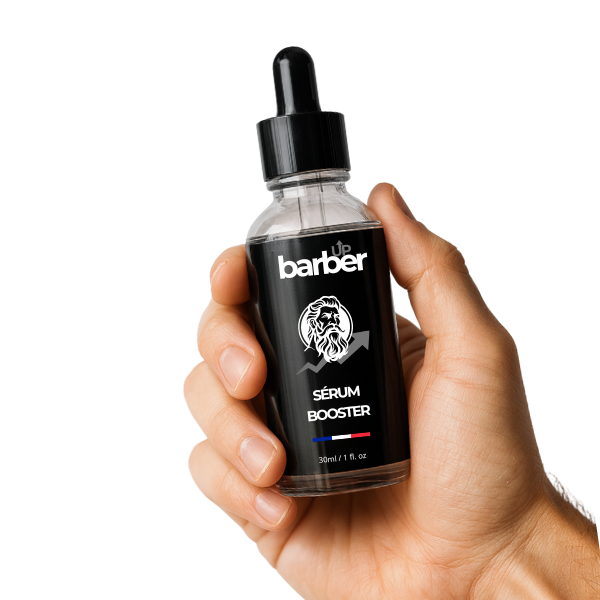 - Le Sérum Booster : formulé en France à base d’huiles naturelles (amande douce, jojoba, karité, coco…), il nourrit en profondeur, comble les zones vides et densifie ta barbe.